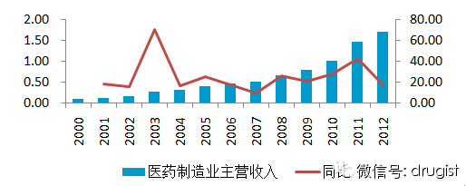 2013年1-11月醫(yī)藥制造業(yè)主營收入1.84萬億,同比增速18.54%。利潤總額1795.68億,同比18.29%。整體表現(xiàn)較好。根據(jù)南方所的預測,2014年,醫(yī)藥工業(yè)總產(chǎn)值2.7萬億元,同比增速19.7%;總體藥品市場規(guī)模1.49萬億元,同比增幅17。3%,醫(yī)藥經(jīng)濟環(huán)境不樂觀,醫(yī)藥行業(yè)保持較高增長仍可期待,但效益下降、競爭激烈。
