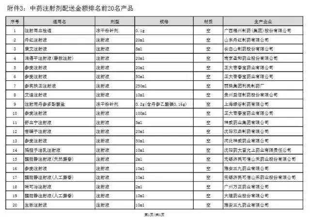 中藥注射劑配送金額排名前20名產(chǎn)品;