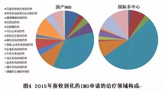 國產IND申報數(shù)量較多的治療領域有:抗腫瘤藥物、消化系統(tǒng)疾病藥物、內分泌系統(tǒng)藥物、風濕性疾病及免疫藥物。國際多中心(含進口IND)申報數(shù)量較多的治療領域主要集中在抗腫瘤藥物。