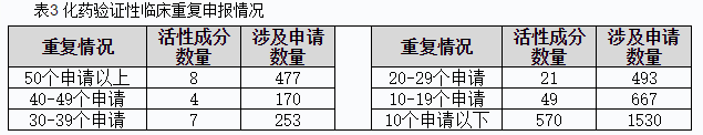 截至2015年底,待審的化藥驗證性臨床申請共3590個,占待審任務總量的20.8%,涉及活性成分660個。重復申報較嚴重的有40個活性成分(待審任務量均在20個受理號以上),涉及注冊申請1393個,占化藥驗證性臨床總任務量的38.8%。其中相同活性成分待審任務超過50個的有沃替西汀、阿普斯特、阿考替胺、曲格列汀、阿伐那非、阿法替尼、阿齊沙坦、卡格列凈。