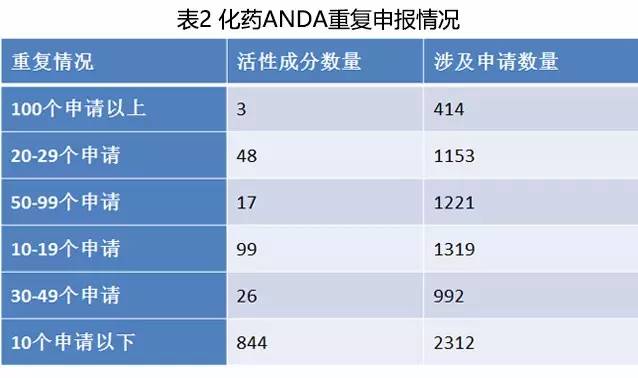 截至2015年底,待審的化藥ANDA申請共7411個,占待審任務總量的42.9%,涉及活性成分1027個。重復申報較嚴重的有94個活性成分(待審任務量均在20個受理號以上),涉及注冊申請3780個,占化藥ANDA總任務量的51%。其中相同活性成分待審任務超過100個的有埃索美拉唑鈉、恩替卡韋、法舒地爾,其中埃索美拉唑鈉和恩替卡韋兩個活性成分2015年的新申請量仍位列前茅。