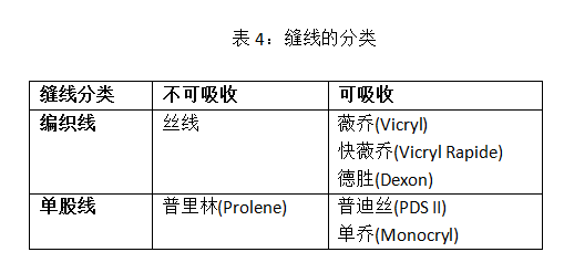 外科縫線(xiàn)按材料可分為不可吸收線(xiàn)和可吸收線(xiàn)兩類(lèi)。不同縫線(xiàn)的材料如下表所示: