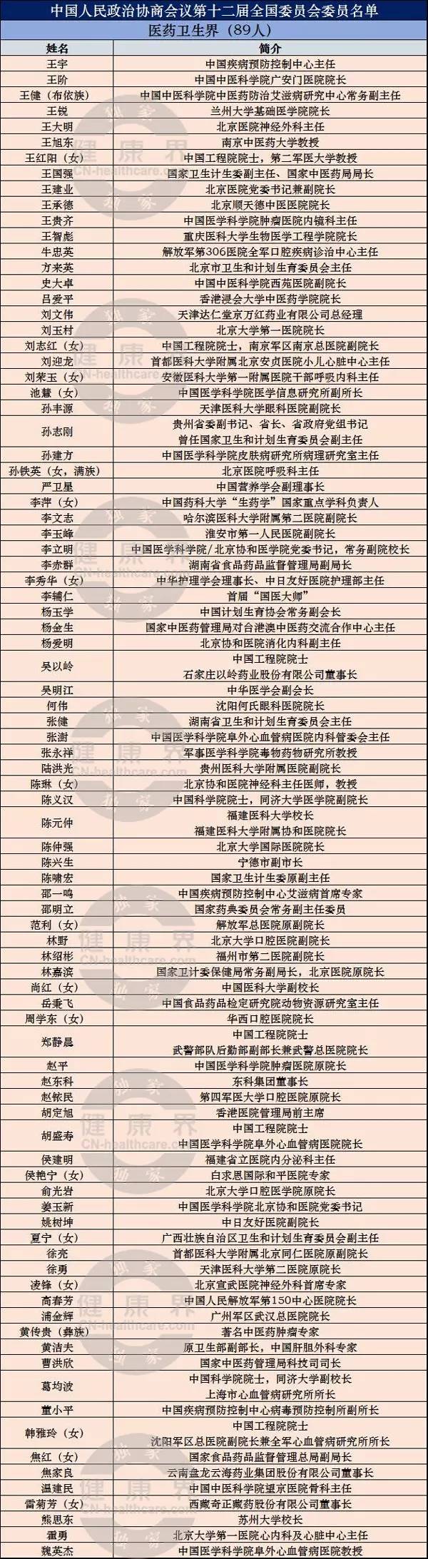 健康界獨家梳理,來自醫(yī)藥衛(wèi)生界的第十二屆全國政協(xié)委員。