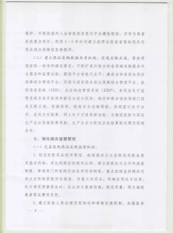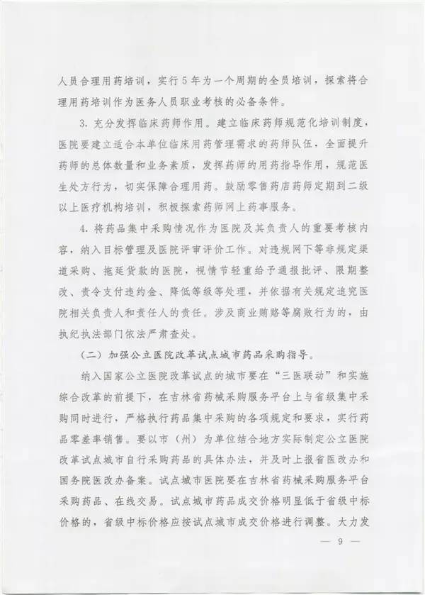 吉林關(guān)于完善公立醫(yī)院藥品集中采購工作的實(shí)施意見