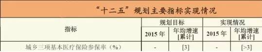 《醫(yī)藥經(jīng)濟(jì)報(bào)》記者梳理發(fā)現(xiàn):在十三五規(guī)劃指標(biāo)中,增加了“科技創(chuàng)新”部分,在民生領(lǐng)域,則減去了城鄉(xiāng)三項(xiàng)基本醫(yī)療保險(xiǎn)的相關(guān)指標(biāo)要求。此前《政府工作報(bào)告》中也提到,經(jīng)過(guò)五年努力,基本醫(yī)療保險(xiǎn)實(shí)現(xiàn)全覆蓋。