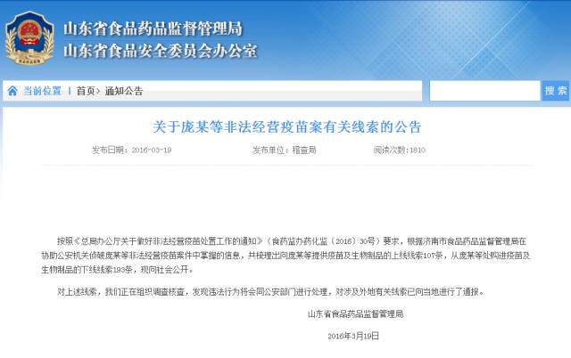 3月19日晚,山東省食藥監(jiān)局對此案作出回應稱,經(jīng)過梳理發(fā)現(xiàn),向龐某等提供疫苗及生物制品的上線線索107條,從龐某等處購進疫苗及生物制品的下線線索193條,涉及全國24省市,另外還有300名買賣疫苗的人員名單。
