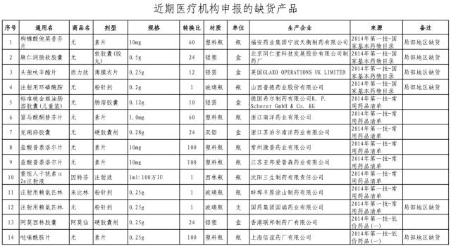 附:近期醫(yī)療機(jī)構(gòu)申報(bào)的缺貨產(chǎn)品