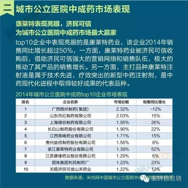中國城市公立醫(yī)院中成藥10大企業(yè)和10大品種