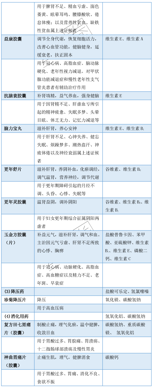 近百種含西藥組分的中成藥品功效及西藥成分