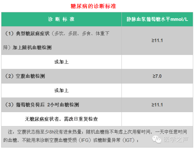最新的糖尿病診斷標準。