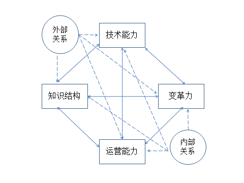 保持與塑造醫(yī)院的成長力,需要提高和增強以下六個方面:知識結(jié)構(gòu)、技術(shù)能力、變革力、運營能力、內(nèi)部關(guān)系、外部關(guān)系,這六大指標(biāo)又構(gòu)成了相互驅(qū)動的因果關(guān)系,我們可以用醫(yī)院“成長力鉆石模型”(圖1)來具體描述醫(yī)院的成長潛力和競爭能力。