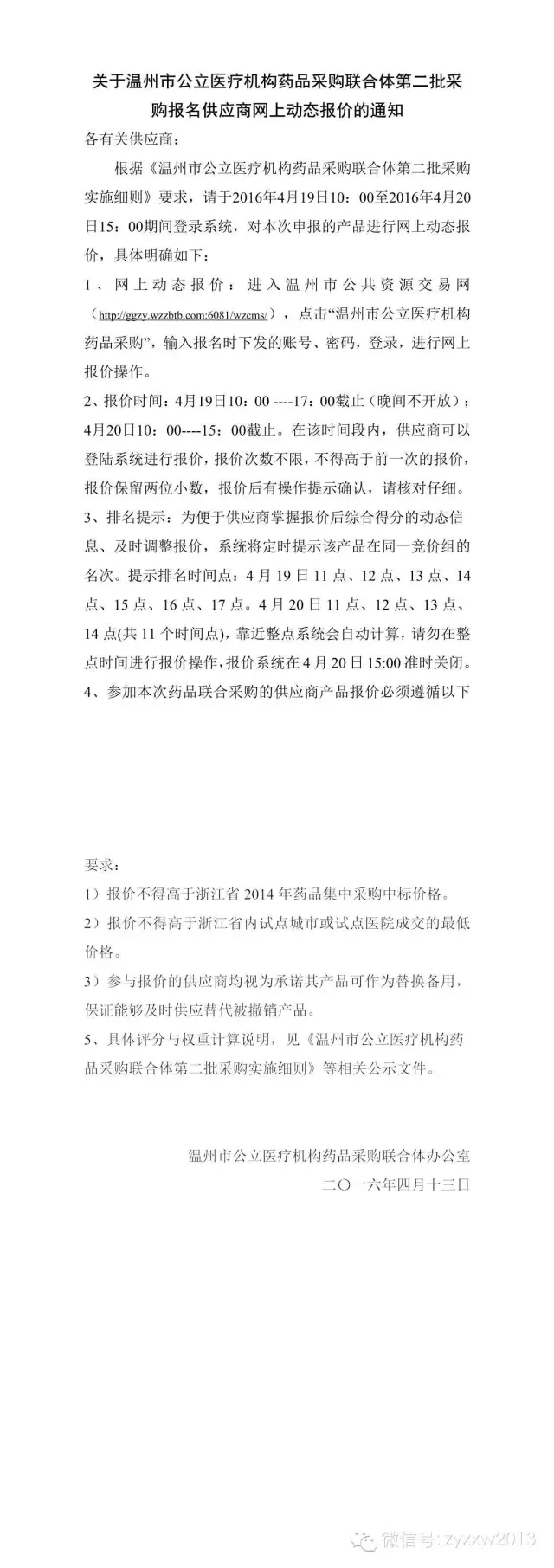 浙江省關(guān)于溫州市公立醫(yī)療機(jī)構(gòu)藥品采購(gòu)聯(lián)合體第二批采購(gòu)的補(bǔ)充公告