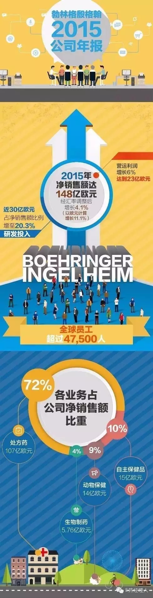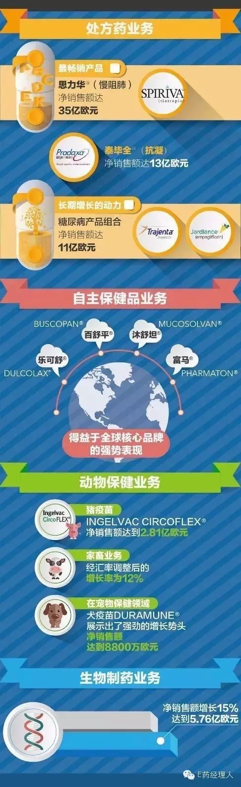 綜上可見,BI在2015財(cái)年取得了出色的業(yè)績(jī)表現(xiàn),所有業(yè)務(wù)領(lǐng)域的凈銷售額實(shí)現(xiàn)增長(zhǎng)。那么,在這份還算不錯(cuò)的成績(jī)單的背后,我們又能解讀出什么樣的關(guān)鍵信息呢? 請(qǐng)留意BI執(zhí)行董事會(huì)主席柏安德教授在年度新聞發(fā)布會(huì)上的那句話:“我們獲得了許多重要的醫(yī)學(xué)進(jìn)展。與此同時(shí),我們?cè)?015年確定了關(guān)鍵的戰(zhàn)略路線,我們將發(fā)揮自身的競(jìng)爭(zhēng)優(yōu)勢(shì),同時(shí)為未來(lái)業(yè)務(wù)的可持續(xù)發(fā)展鋪平道路?!?/span>