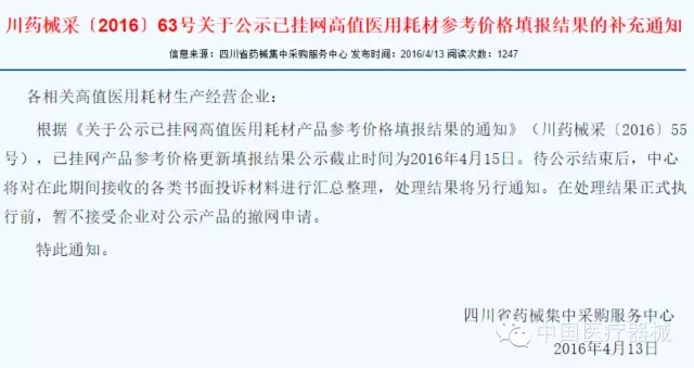 四川省自2014年7月16日正式執(zhí)行高值醫(yī)用耗材集中掛網(wǎng)陽光采購后,以川人的勇猛成為與浙江、安徽并列的屠價(jià)大省。