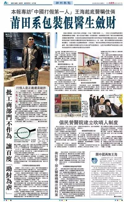 (記者劉凝哲)王海與莆田系鬥了18年,莆田系的游醫(yī)產(chǎn)業(yè)鏈卻越「鬥」越壯大,莆田系不少四處貼小廣告的小診所卻「鬥」成了資產(chǎn)數(shù)以億計的上市公司。若不是青年魏則西之死,令莆田系再度站在曝光臺上,人們?nèi)詴⒋蟀训木让X扔給這些唯利是圖的不法商人。