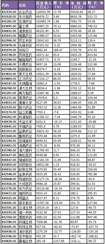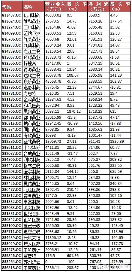 92家新三板藥企成績單