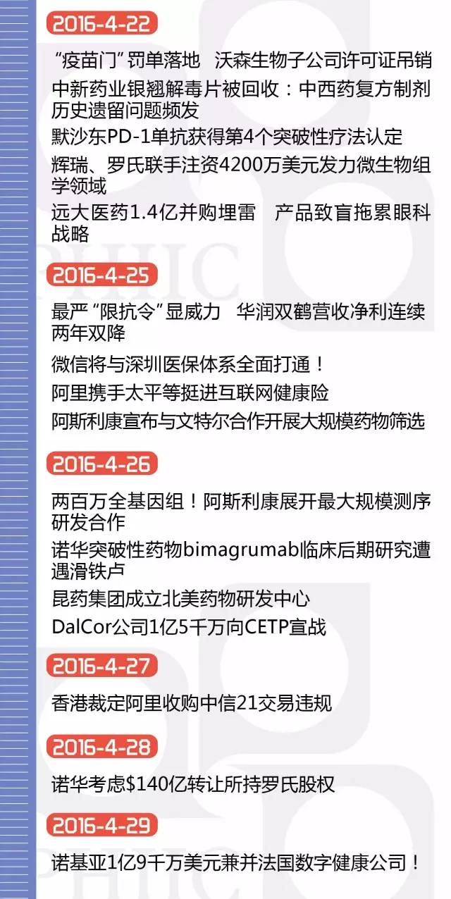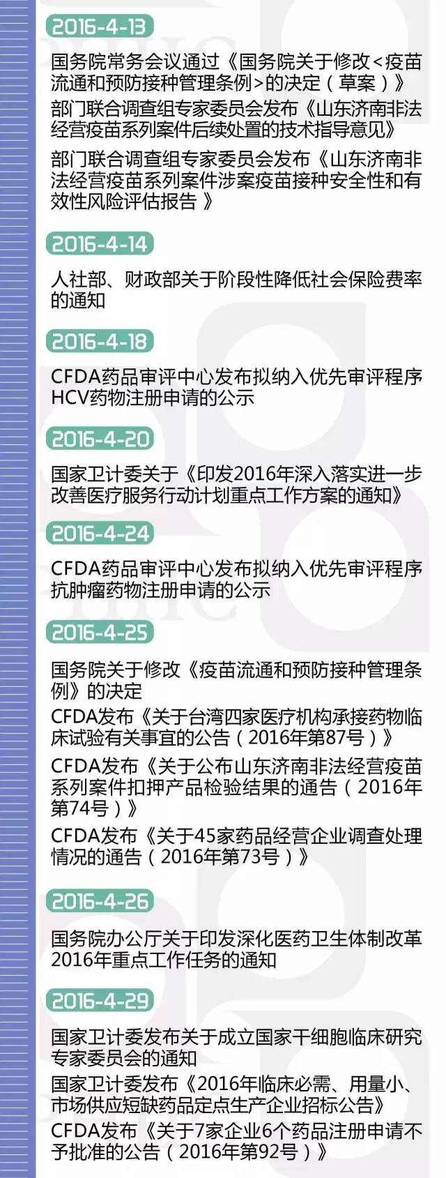 2016年4月醫(yī)藥行業(yè)大事件回顧