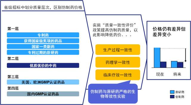 本土企業(yè)利用國際質(zhì)量認證獲得準入優(yōu)勢,特殊質(zhì)量認證如“國家科學技術(shù)進步獎”,在省級準入中將越來越重要。所有仿制藥需要完成仿制藥質(zhì)量一致性評價,保證與原研藥質(zhì)量相同。
