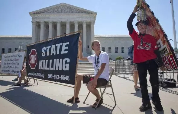 圖:二○一五年七月,美國反死刑人士在華盛頓特區(qū)的最高法院外示威美聯(lián)社