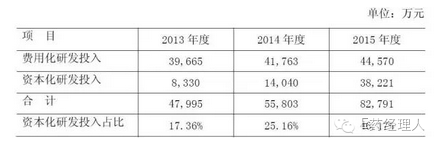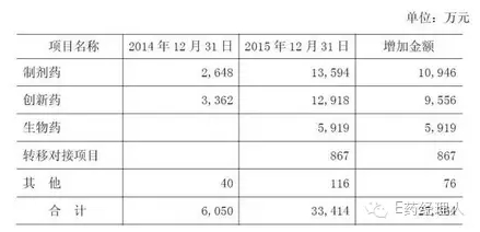 1.制劑藥:2015年制劑藥研發(fā)支出資本化金額較2014年增加10,946萬(wàn)元,主要原因系公司在布局創(chuàng)新藥和生物藥開(kāi)發(fā)的同時(shí),也加強(qiáng)仿制藥制劑的開(kāi)發(fā),公司著眼高端仿制藥,差異化特殊制劑如脂質(zhì)體和白蛋白等藥物開(kāi)發(fā),涉及品種較多,且公司專(zhuān)業(yè)團(tuán)隊(duì)對(duì)每個(gè)制劑藥進(jìn)行評(píng)估,對(duì)已進(jìn)入到開(kāi)發(fā)階段且開(kāi)發(fā)成功可能性較大的品種進(jìn)行資本化處理。