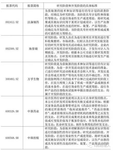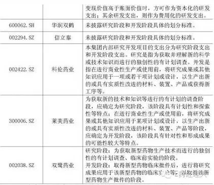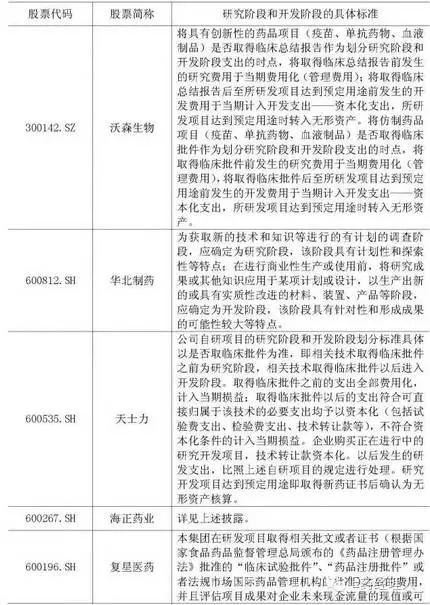 通過(guò)與同行業(yè)公司及恒瑞醫(yī)藥相關(guān)政策的比較,同行業(yè)公司界定開(kāi)發(fā)階段的起點(diǎn)主要分兩類(lèi),一是以可以進(jìn)入臨床或以申報(bào)期為起點(diǎn),二是進(jìn)行商業(yè)化生產(chǎn)或使用前。