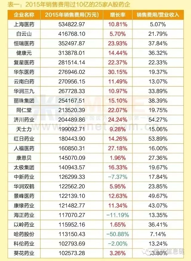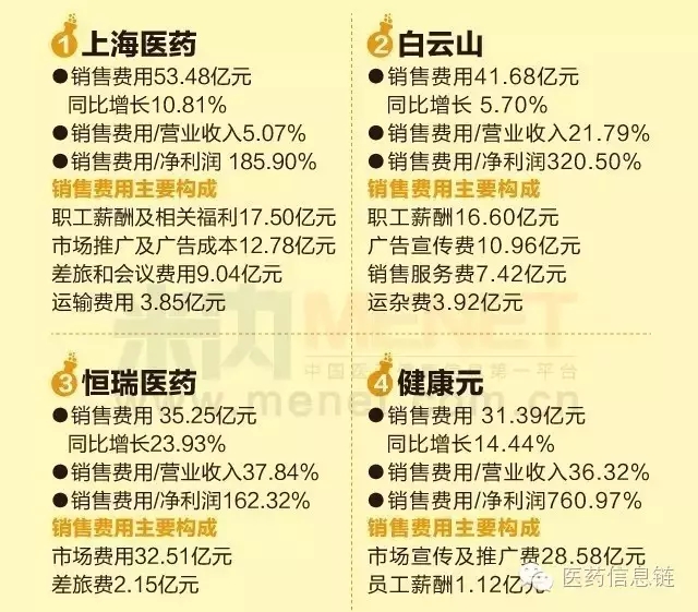 【盤點】2015年,哪11家藥企銷售費用過20億?
