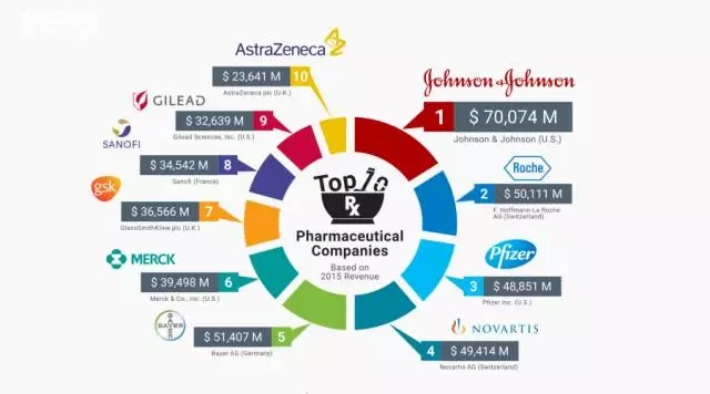 根據(jù)知名的醫(yī)藥咨詢公司Igeahub的統(tǒng)計:2015年全球醫(yī)藥市場的產(chǎn)值高達11140億美元,醫(yī)藥產(chǎn)業(yè)趨于成熟且高度整合階段。2015年,排在市場前10名的公司累計份額超過了30%,它們大多數(shù)總部位于歐洲或者美國,且產(chǎn)品涵蓋廣泛的疾病治療領域。值得一提的是,這些公司在生命科學領域的研發(fā)能力較為卓越。它們的聯(lián)合研發(fā)費用超過了研發(fā)預算,甚至是公共部門在生命科學領域研究的研發(fā)預算。