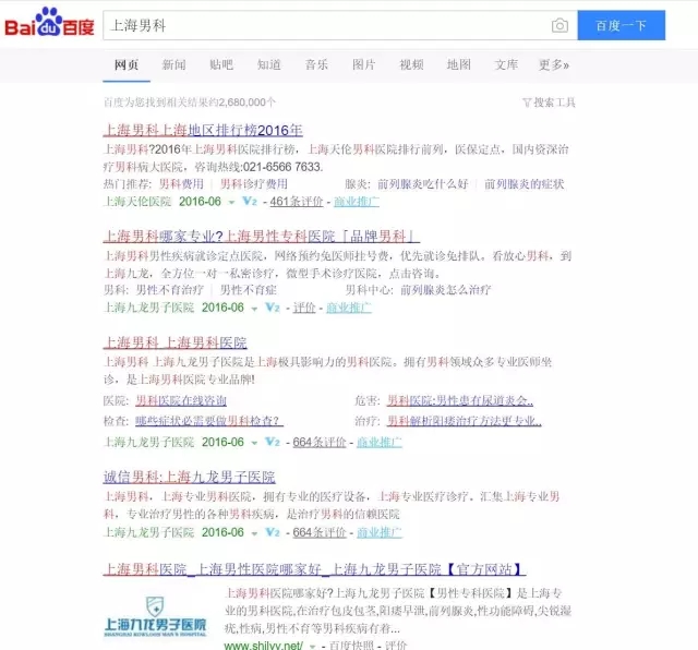 通過百度搜索了“上?!焙汀澳锌啤钡汝P鍵詞,得到的結(jié)果中均有被標注為“商業(yè)推廣”的醫(yī)院信息置于搜索結(jié)果頂部,說明百度在資本面前“言出必行”——“隨著公司通過調(diào)整經(jīng)營方式來適應新的監(jiān)管規(guī)范,他們有望借助‘高品質(zhì)’醫(yī)療客戶逐步恢復業(yè)務?!?/span>