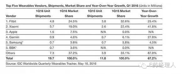 但市場調(diào)研機構(gòu)的數(shù)據(jù)仍然在鼓吹這一市場,IDG最近發(fā)布的報告指出,在2016年第一季度,可穿戴設(shè)備出貨量相比去年同年上漲了67.2%。