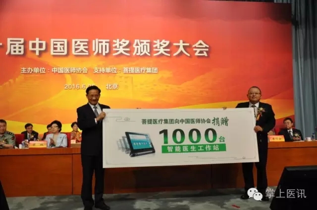 而本次頒獎大會另一大亮點是,中國醫(yī)師協(xié)會攜手菩提醫(yī)療啟動全國首個智能醫(yī)生工程,菩提醫(yī)療集團(tuán)董事長付鋼向獲獎醫(yī)師贈送1000臺智能工作站,張雁靈會長代表獲獎醫(yī)師領(lǐng)取智能工作站。