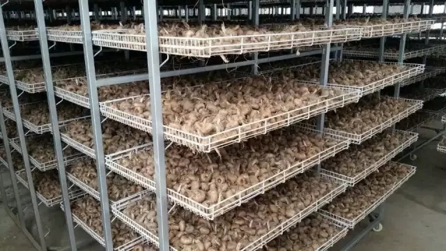 其實,5月將西紅花種球從土里挖出來,就放在我們最開始看到的架子上,這是崇明西紅花種植基地創(chuàng)新的培育方式,而每年11月,它盛開的時候,也是在架子上的呢