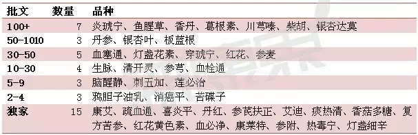 40種常見(jiàn)中藥注射劑批文數(shù)量統(tǒng)計(jì)