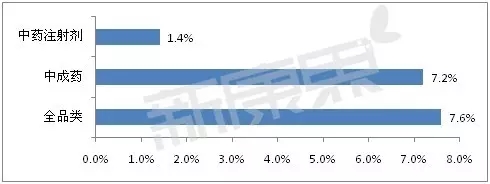 2015年中藥注射劑、中成藥以及全品類(lèi)終端銷(xiāo)售規(guī)模增長(zhǎng)情況