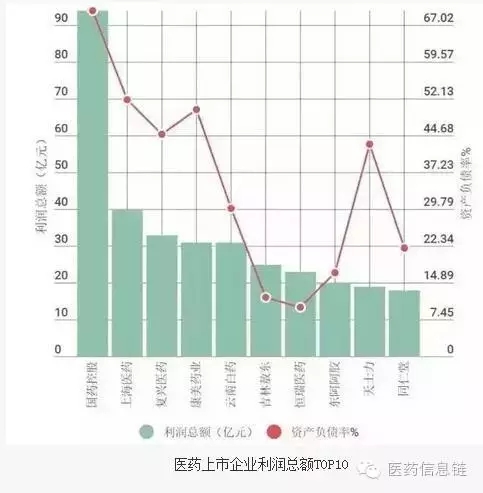國藥控股以93.97億元成為利潤總額最高的企業(yè),上海醫(yī)藥以41.72億元位列第二。國藥控股、上海醫(yī)藥、康美藥業(yè)、天士力資產(chǎn)負(fù)債率都在50%以上。