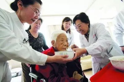 張菊香(右一)喂老人吃長(zhǎng)壽面