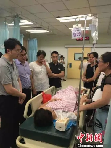 6月23日晚10時(shí)許,廣西醫(yī)科大學(xué)第一附屬醫(yī)院急診科,發(fā)生一起傷醫(yī)事件。一名女護(hù)士被一名患者的陪人打傷。圖為被打女護(hù)士被送醫(yī)治療。藍(lán)飛燕攝
