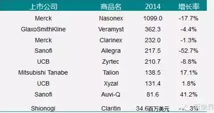 此前,新康界對(duì)于全球抗過敏藥物市場(chǎng)進(jìn)行分析,2014年市場(chǎng)總值約為25億美元(僅包括歐、美、日上市公司,下同),抗過敏藥延續(xù)了最近3年的萎縮,較2013年下降了-16.04%,下降幅度存在擴(kuò)大的趨勢(shì),2015年還將繼續(xù)坍縮態(tài)勢(shì)。