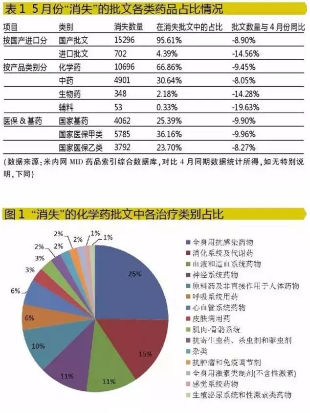 在“消失”的15998個(gè)批文中,有15296個(gè)國(guó)產(chǎn)批文,702個(gè)進(jìn)口批文。雖然“消失”的國(guó)產(chǎn)批文占比在95%以上,但與4月份同期相比,進(jìn)口藥物批文數(shù)量同比減少了14.56%,按比例算,進(jìn)口批文減少量大于國(guó)產(chǎn)批文。