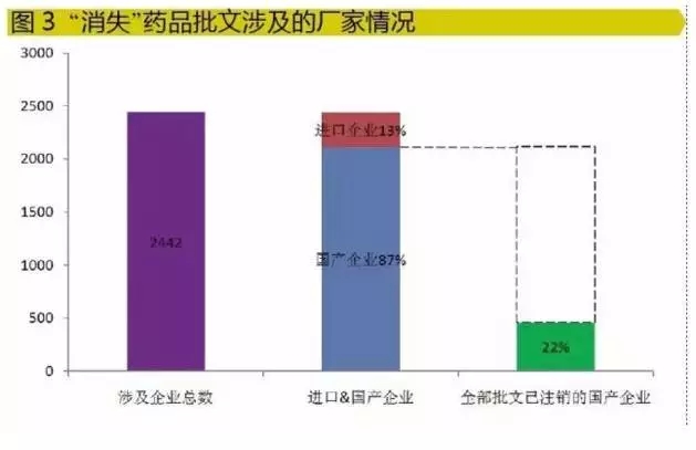 本次“消失”的藥品批文涉及2400多家企業(yè),其中進(jìn)口企業(yè)320余家,國(guó)產(chǎn)企業(yè)2100多家。通過進(jìn)一步分析數(shù)據(jù)發(fā)現(xiàn),2100多家本土企業(yè)中近450家企業(yè)所有批文都已過期,也沒有進(jìn)行再注冊(cè)。