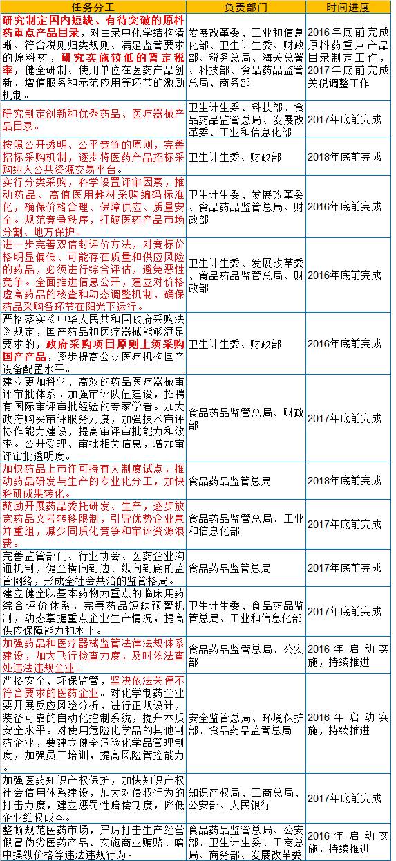 關于促進醫(yī)藥產業(yè)健康發(fā)展的指導意見重點工作部門分工方案(要點摘錄)
