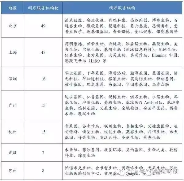 據(jù)不完全統(tǒng)計,截至目前,全國有數(shù)百家基因測序服務公司,主要分布在北京、上海、廣州、深圳、杭州、天津、武漢等省市,2015年中,幾乎每周都有成立新公司的消息。