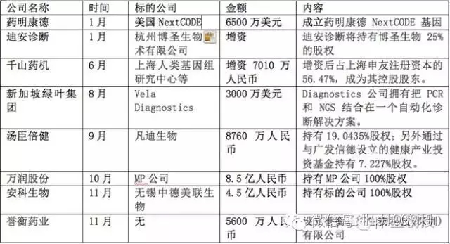 2015年國內(nèi)基因產(chǎn)業(yè)收購表