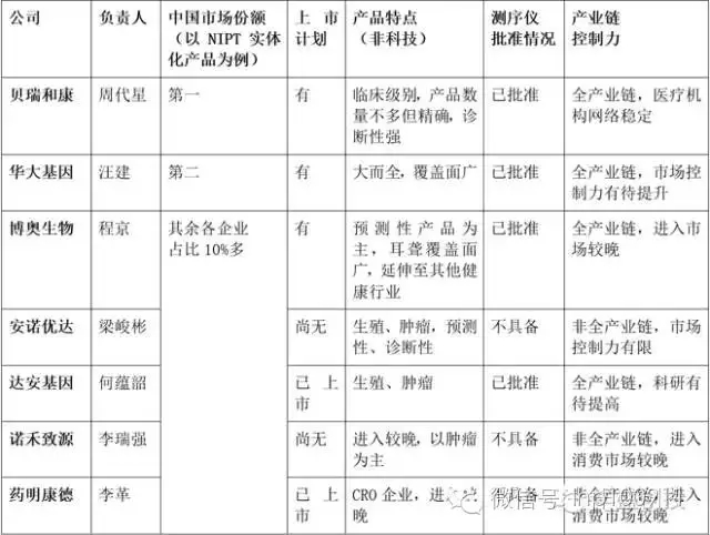 除了資金、技術實力雄厚的巨頭外,小型基因公司的數(shù)量也在日益飛漲,這些初創(chuàng)公司的核心人員大多來自上述基因巨頭,如華大基因等公司。