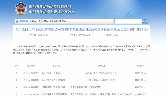 8月3日,一直在醫(yī)藥圈里面流傳的信息被證實,山東省食藥監(jiān)局發(fā)布公告,撤銷/收回6家醫(yī)藥商業(yè)公司GSP證書。此前,這個消息一直在醫(yī)藥圈里面流傳,不僅僅在山東醫(yī)藥圈,在全國醫(yī)藥圈里面都引發(fā)不小的震動。