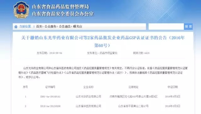 此外,據山東醫(yī)藥圈當地資深人士介紹,山東東惠最早是省局直屬公司,業(yè)務開展的也是相當有規(guī)模,此次也被收回了GSP證書。