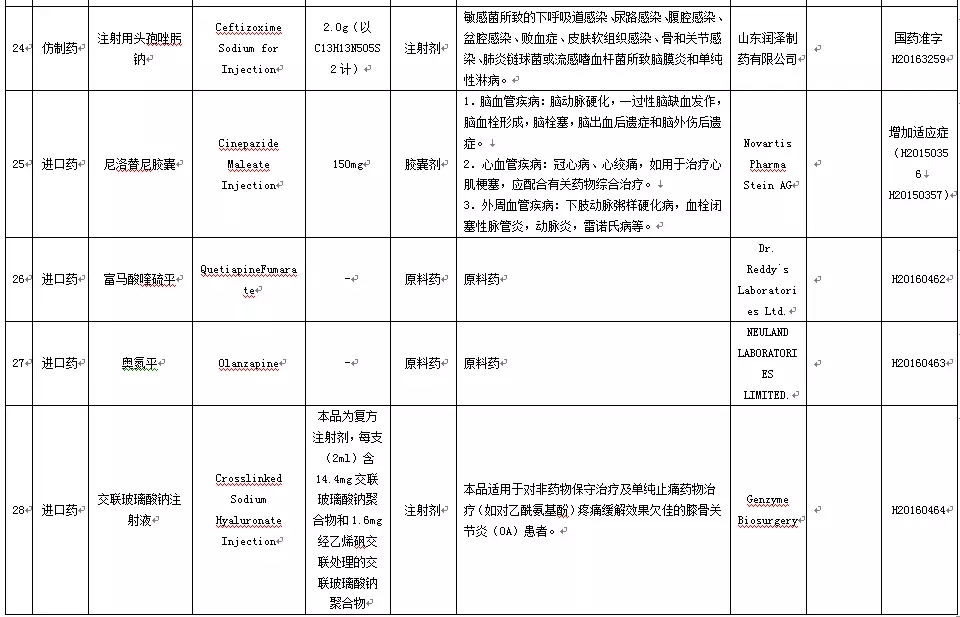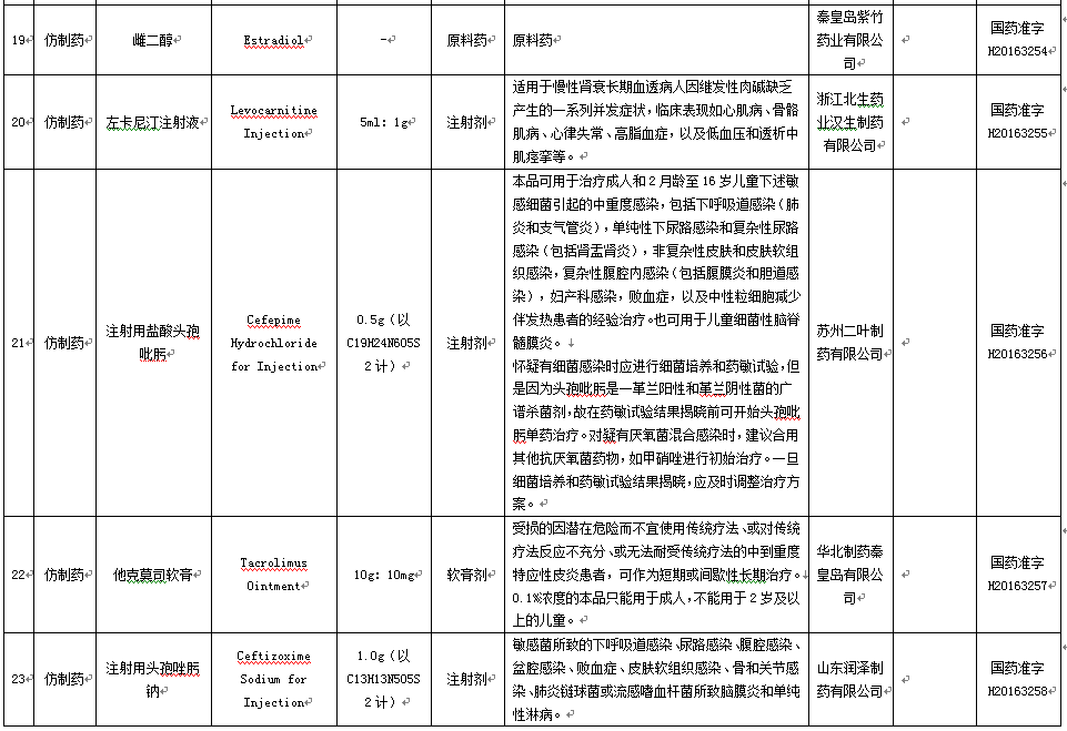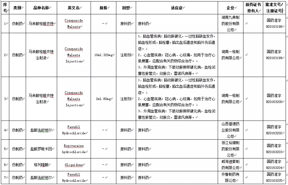 2016年7月份已批準(zhǔn)藥品上市品種目錄