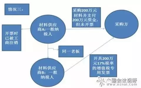 圖中顯示:收款方、銷售方是一般納稅人的材料供應(yīng)商A,發(fā)票開具方是與公司A同一老板的材料供應(yīng)商B,出現(xiàn)了銷售方、收款方和開具方不是同一個單位的情況,采購方獲得的一張200萬元的增值稅專用發(fā)票不可以抵扣增值稅進項稅金,而且該開票行為是一種虛開增值稅專用發(fā)票的行為。