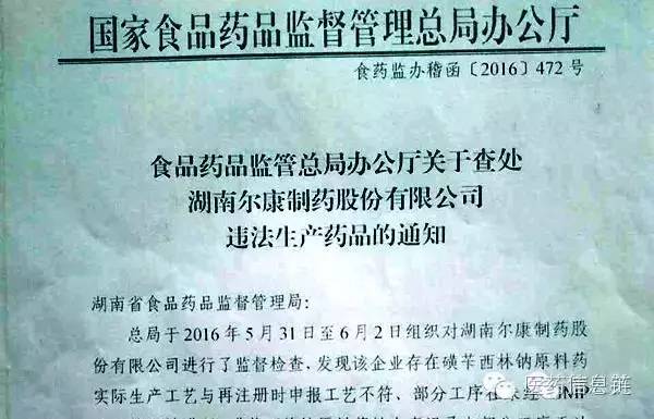 國家食藥監(jiān)總局指出,爾康制藥的上述行為已涉嫌違反國家《藥品管理法》及《藥品生產(chǎn)質(zhì)量管理規(guī)范》的有關(guān)規(guī)定,并向全國地方食藥監(jiān)部門下發(fā)《通知》。