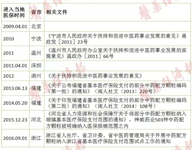 已進(jìn)入醫(yī)保的還有重慶、安徽、廣州等地,而山西、廣東、福建等省參照中藥飲片政策對配方顆粒給予報銷。