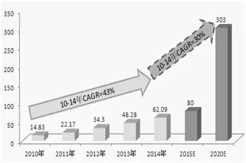 2010-2020 年中藥配方顆粒市場規(guī)模預(yù)測(單位:億元)